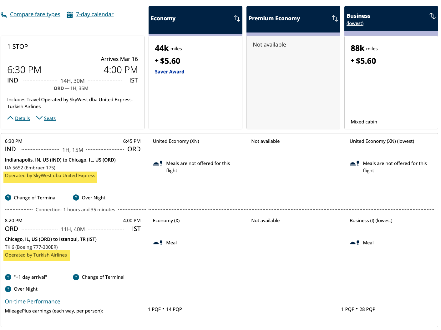 As you can see, United takes care of the hard stuff for you. It flies you to Chicago (ORD) on its own plane, and then coordinates a flight from Chicago to Istanbul on Turkish Airlines, a partner carrier. There’s no extra rigmarole to book with Star Alliance partners.