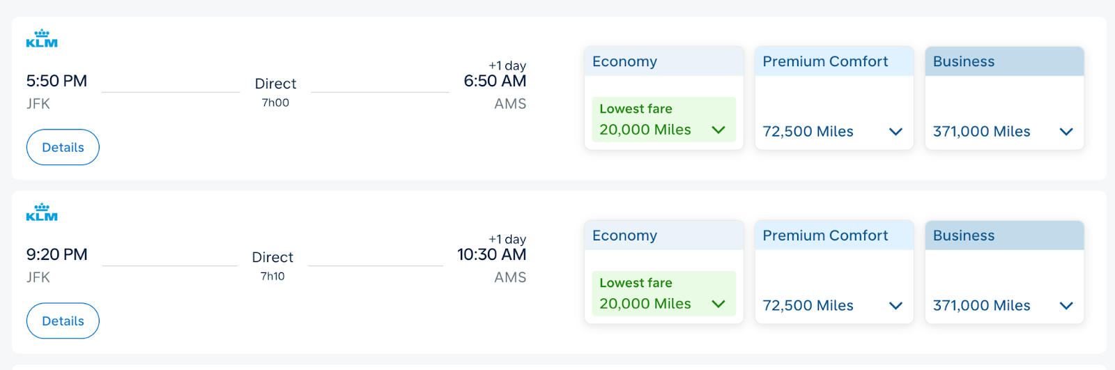 KLM also frequently runs Flying Blue Promo Rewards, offering heavily discounted fares in economy, premium economy, and business class.