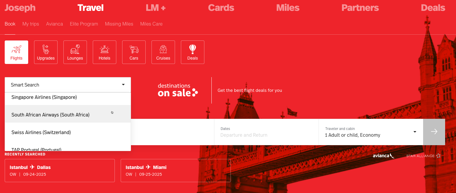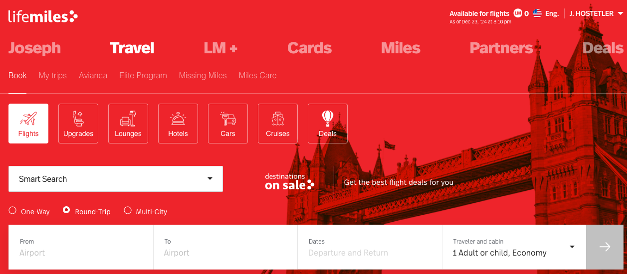 Redeeming LifeMiles is relatively straightforward. Sign into your account and select the “Travel” tab at the top of the page. This will take you to a landing page where you can search for award flights.
