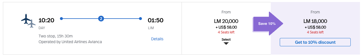 Avianca gives you the option to purchase miles during the booking process if you don’t have enough to reserve your desired seat. In this way, you can effectively use a combination of miles and cash to book your flight.
