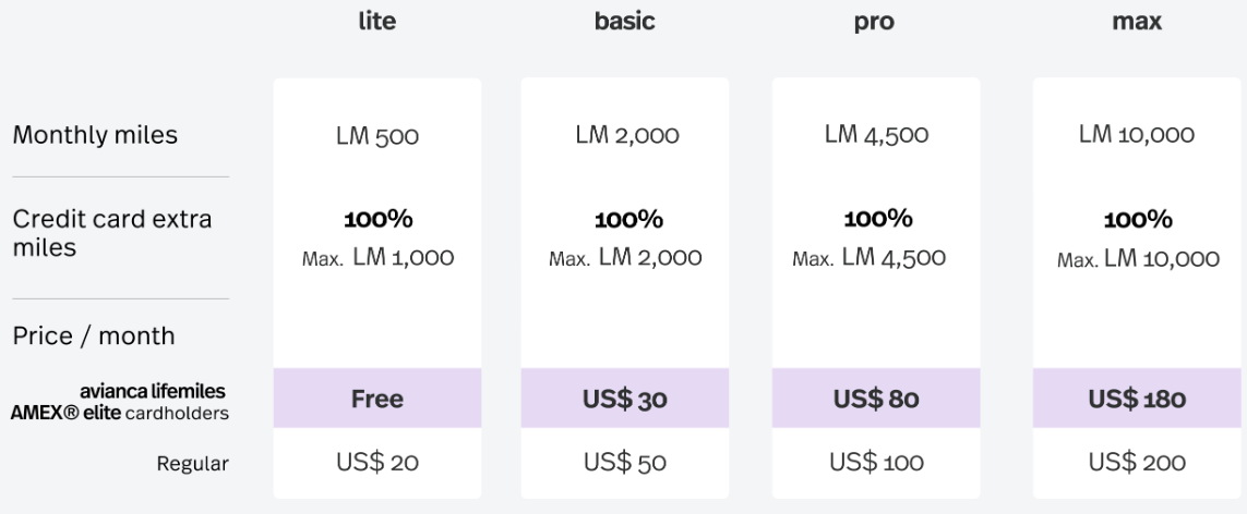 There are four membership levels, each with varying benefits and price points — including discounts for American Express Avianca cardholders.