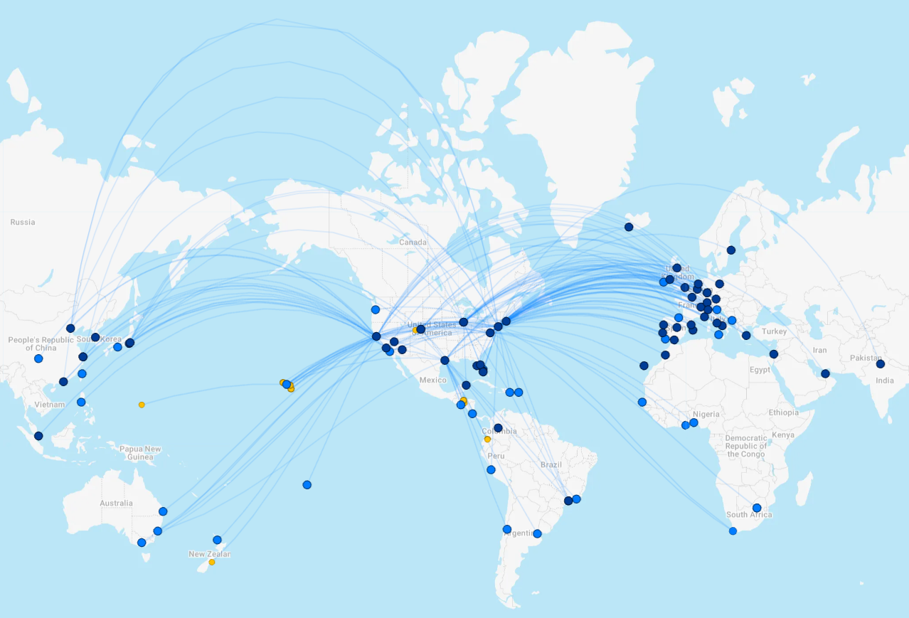 Here’s a route map that, for the most part, displays where you can fly in United Polaris.