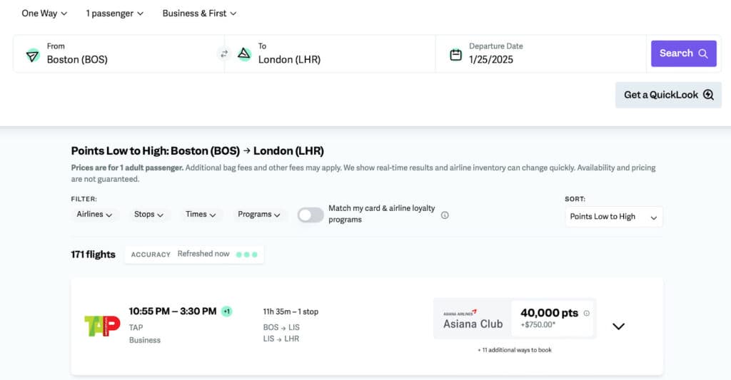 Booking business class flights with points and miles isn't just a travel hack; it's a game-changer that opens the door to a world of luxury and convenience, but for too many travelers, it's struggle to find flights. Rather than wasting hours of time on airlines' websites, get real-time, accurate results from point.me. In addition to finding business class award seats, point.me will also let you know the best program to book with — and even give you step-by-step instructions on how to do it.