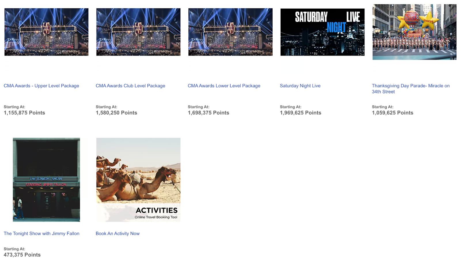 Of all the ways to use your points, redeeming them for experiences will be the most variable. These packages will include hotel accommodations for two guests at a four-star property, but the value you assign to the other elements will be subjective. What value do you place on CMA tickets or SNL tickets without waiting in line?