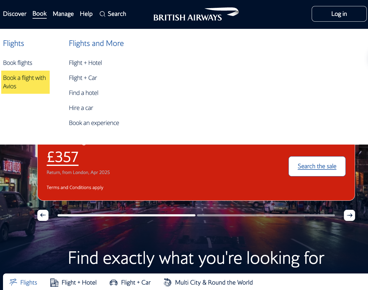 The British Airways website is easy to use, though it can be a bit slow at times. To start, find the “Book” tab at the top of the site and click on “Book a flight with Avios.”