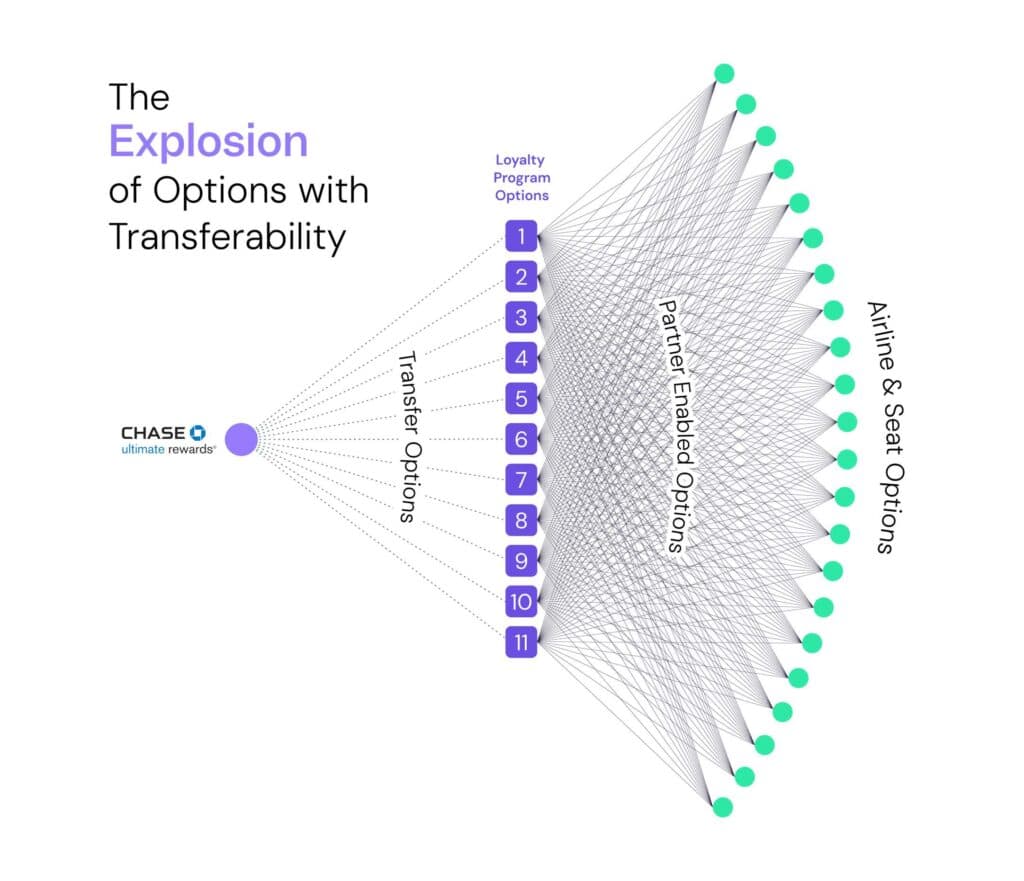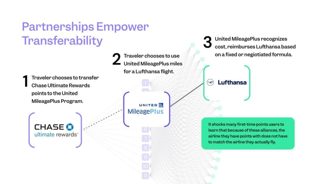 For example, a traveler with Chase Ultimate Rewards points could transfer those points to one of 11 airline programs. If they choose to transfer their points to United’s MileagePlus program, they can then choose to redeem those points for a flight on one of more than two dozen partner airlines.