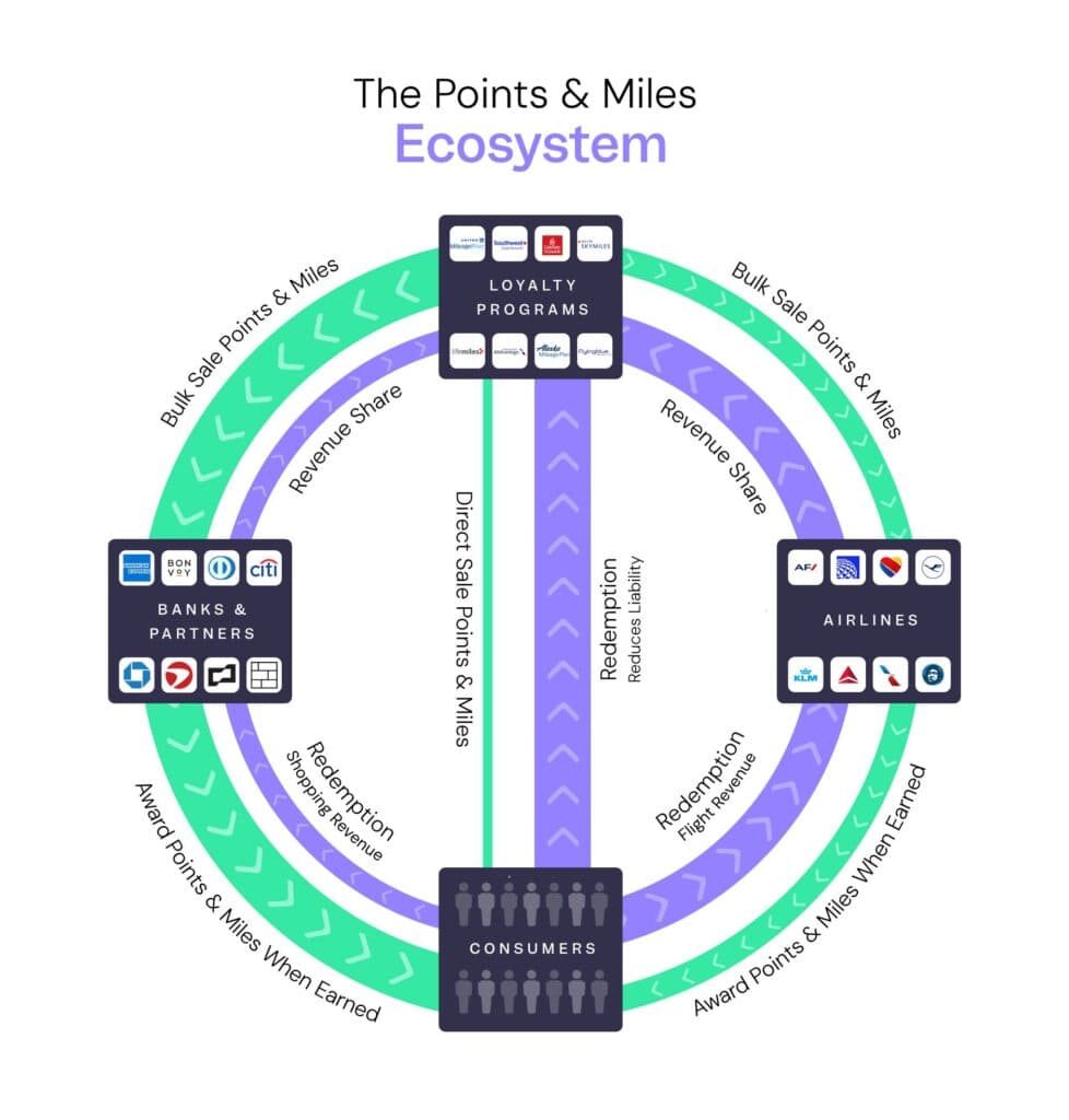 Points and miles function as a currency minted by loyalty programs and then “sold” to a third party — which could be the airline of that loyalty program (a separate entity from the airline), a bank/credit card issuer, or another partner. Consumers then “earn” an amount of this currency as a reward for spending with the airline, the bank, or other partner. Completing the cycle, consumers can then redeem them for rewards with the airlines, banks, and other partners in that ecosystem.