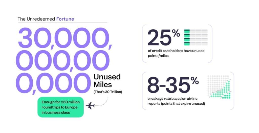 Points are undeniably valuable, but redeeming them is also undeniably challenging for many consumers. Nearly one-fourth of credit cardholders have unused points and miles, resulting in millions of dollars in untapped value. In 2018, McKinsey estimated the global number of unredeemed airline miles to be 30 trillion. That would cover roughly 250 million roundtrips from the U.S. to Europe in business class — one roundtrip for almost every American adult.