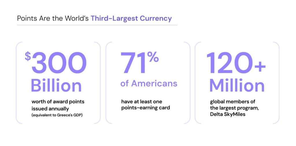 Airlines, hotels, and even retailers use points to drive loyalty and increase profits, while consumers avidly collect them and often devote hours to cracking the code to redeem them for the most value. It’s estimated that 71% of Americans have at least one credit card that earns points or cash back, and the world’s largest airline loyalty program, Delta SkyMiles, has more than 120 million global members.