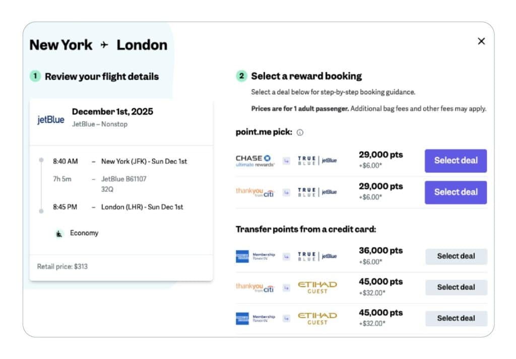 Tools like point.me show redemption rates across various programs, making it easier for travelers to quickly see all the available point fares and choose the one that’s best for them.