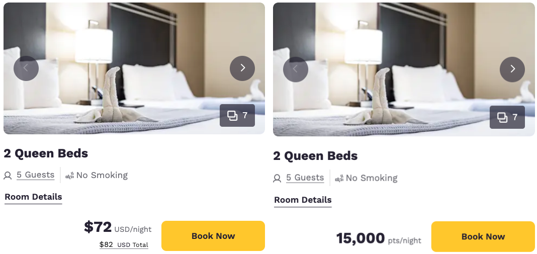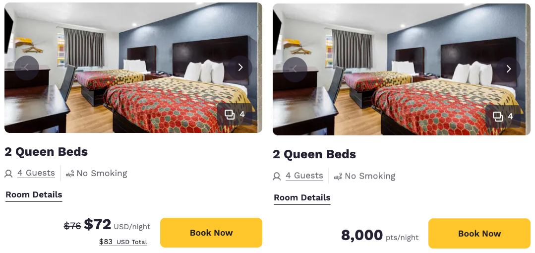 Meanwhile, the nearby EconoLodge Akron Copley Northwest charges $83 per night for a similar room. But you can book an award stay for just 8,000 points. That’s a value of 1.03 cents per point — nearly double the value of the previous hotel.