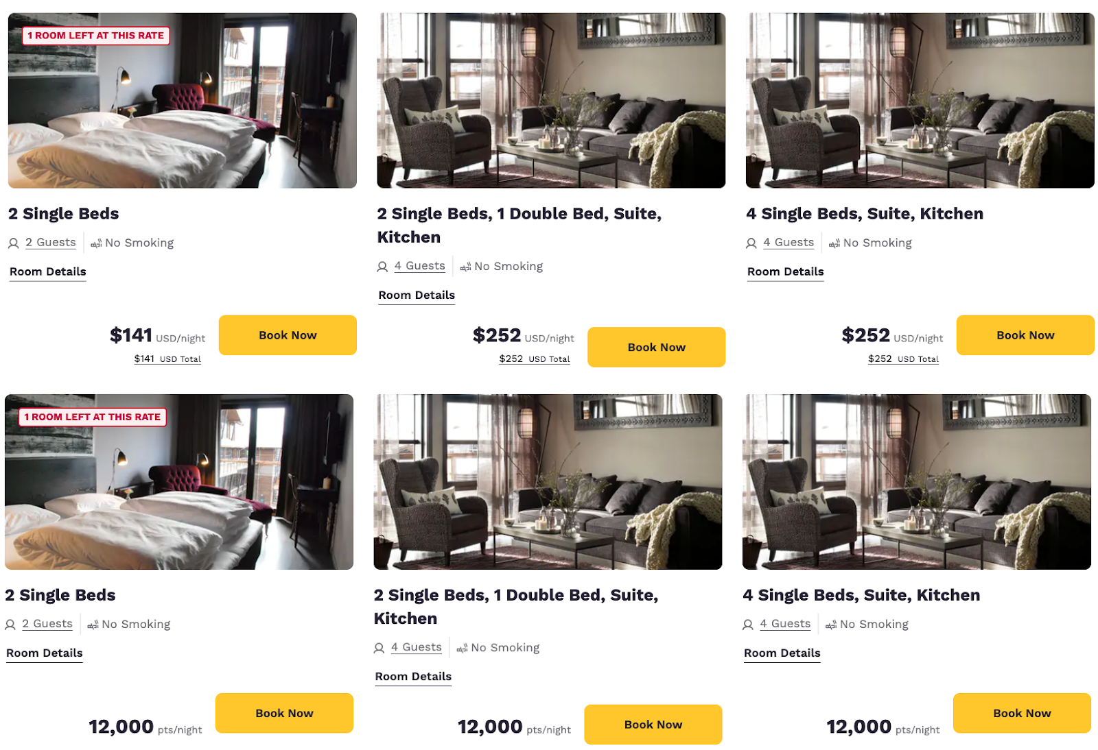 Another unique aspect of Choice Privileges is the ability to book suites for the same award price as base rooms. For example, Norefjell Ski & Spa, Ascend Hotel Collection in Norway gives you the option to reserve a nondescript 2 Single Beds room or a 4 Single Beds Suite with a kitchen for 12,000 points. The difference in cash price is over $100!