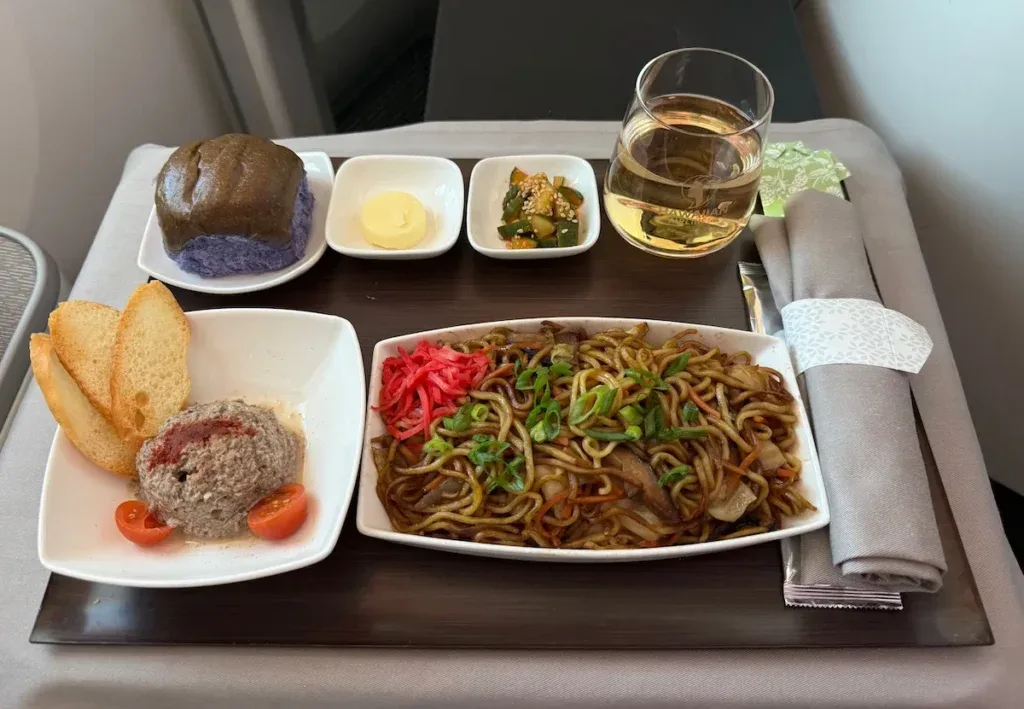 On Japan-bound flights, passengers can choose between a Hawaiian fusion menu or a Japanese menu. Meanwhile, on flights to Korea, Australia, and New Zealand, passengers can choose from a pair of entrées or breakfasts tailored to the local market's tastes.