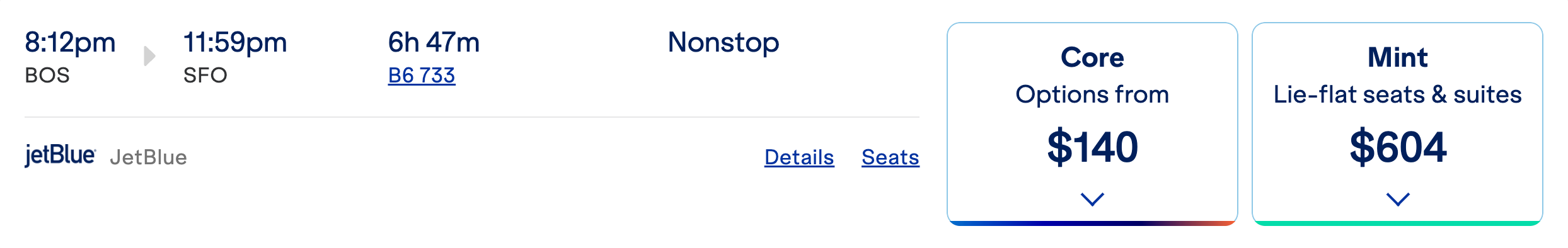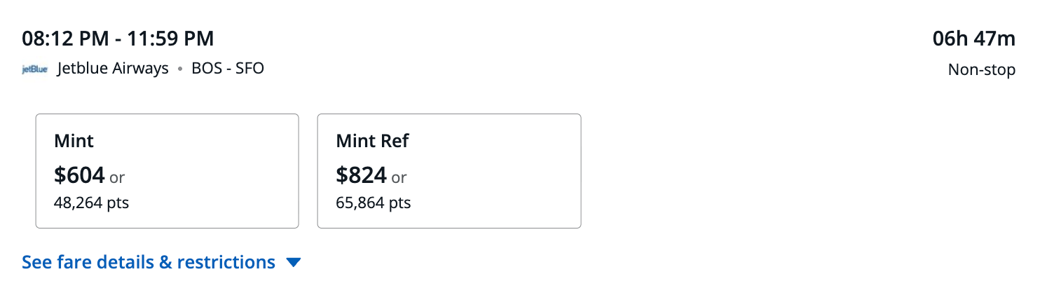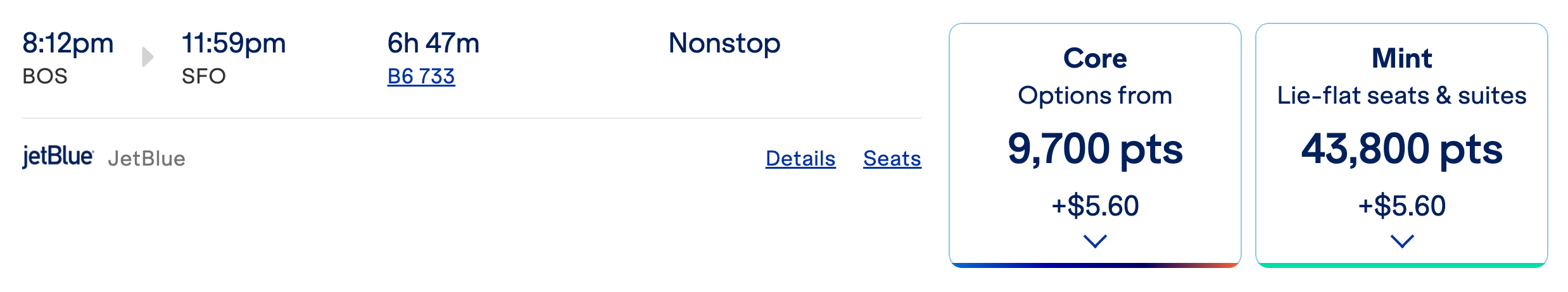 It’s also possible to book JetBlue Mint using points in an airline’s loyalty program or within your credit card’s travel portal.