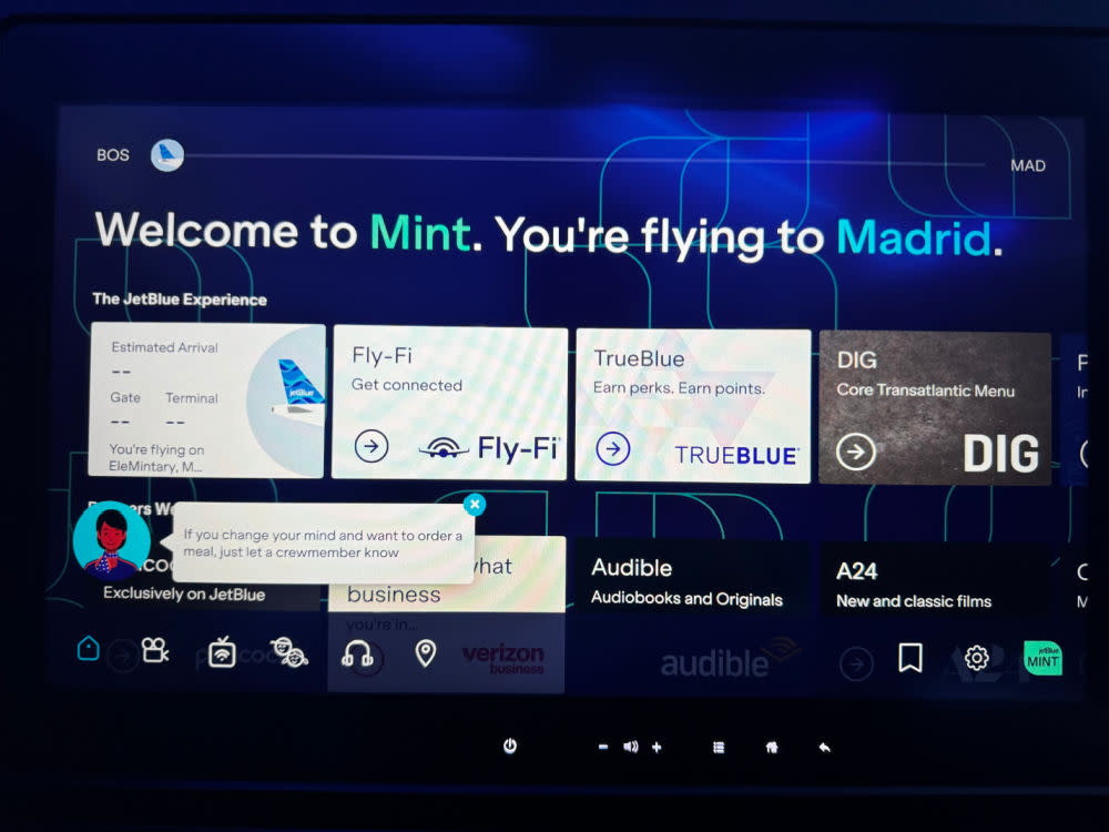 JetBlue’s three plane types with Mint have some slight differences, though they all offer a touchscreen entertainment system and lie-flat beds.