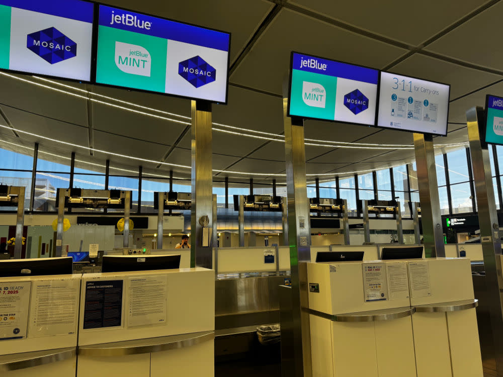 JetBlue’s Mint passengers, along with those holding TrueBlue Mosaic elite status, can use dedicated check-in areas. What this looks like varies, though. In Boston, for example, you’ll find dedicated counters at the far end of JetBlue’s massive check-in area.