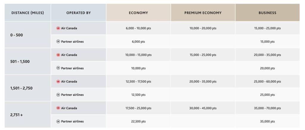 Meanwhile, Air Canada uses a more straightforward approach when pricing award seats with its airline partners. You’ll be charged according to your origin, destination, and the distance you fly. Prices don’t change day-to-day as they do with an Air Canada flight.