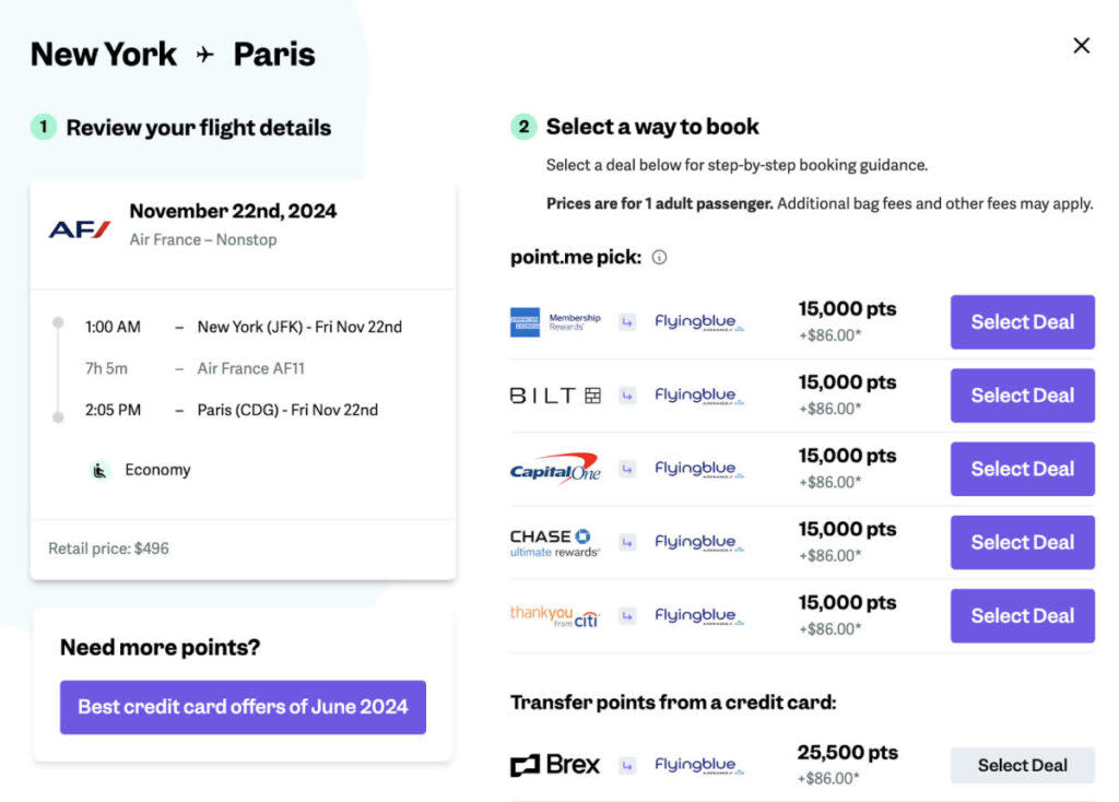 Now that you know how to get to Europe using points and miles, let’s take what we’ve learned and book a flight with point.me.